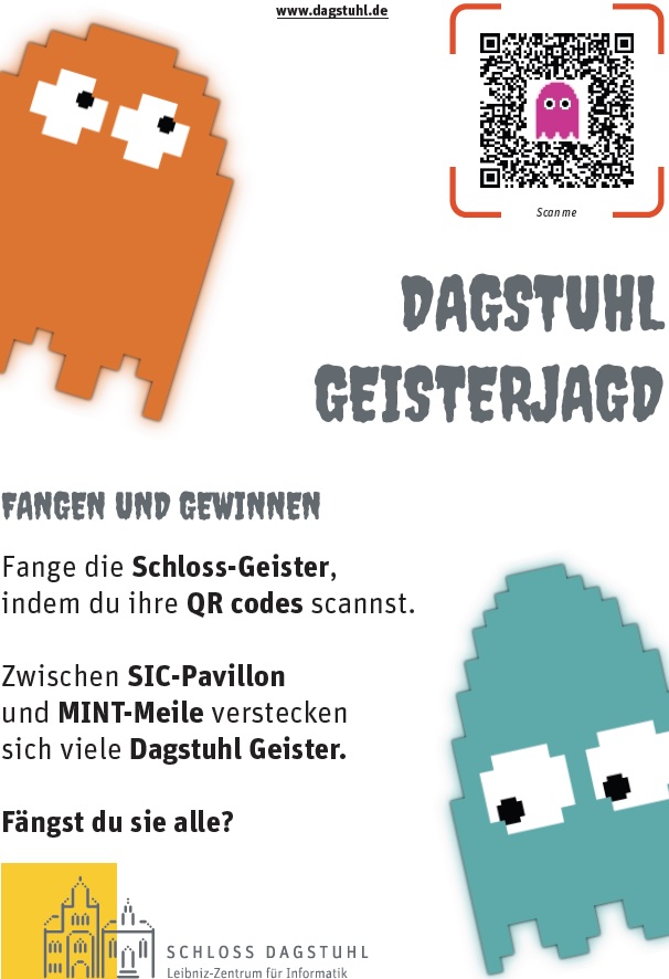 Auf dem Fest kann man vom 02. bis 04.10., ausgehend vom Saarland Informatics Campus (SIC)-Pavillon in der Mainzer Straße 3 (Nähe "Hilde und Heinz“), die Geister von Schloss Dagstuhl jagen: